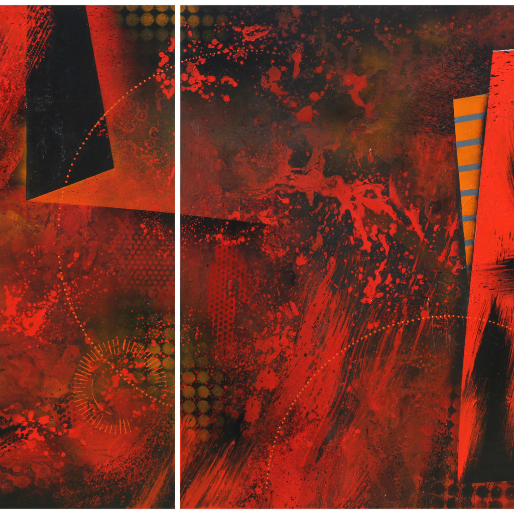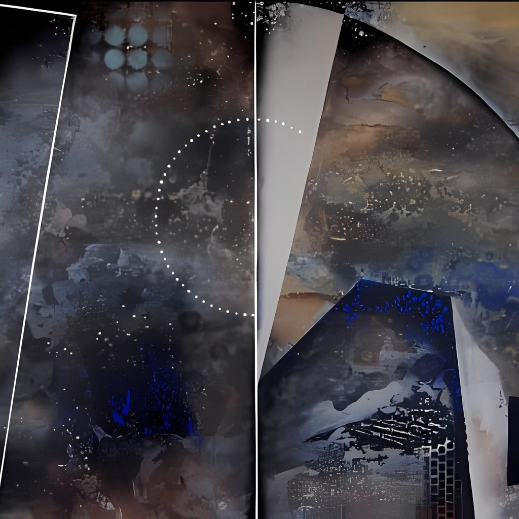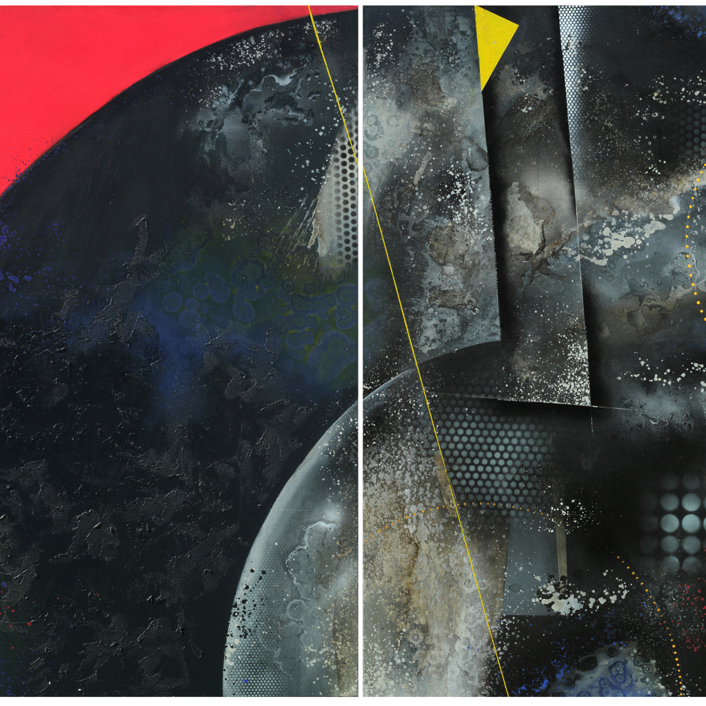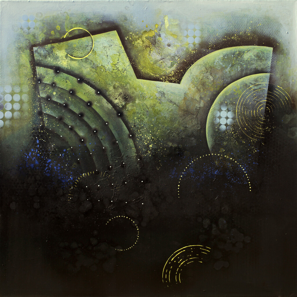 Asi, mi lenguaje pictórico, abstracto, va construyendo,entre superficies planas articuladas con superposiciones, recursos gráficos, matices cromáticos y texturas, los medios plásticos con los que voy construyendo mi discurso conceptual: las culturas milenarias de Oriente, El lenguaje de las matematicas, los viajes en el tiempo.