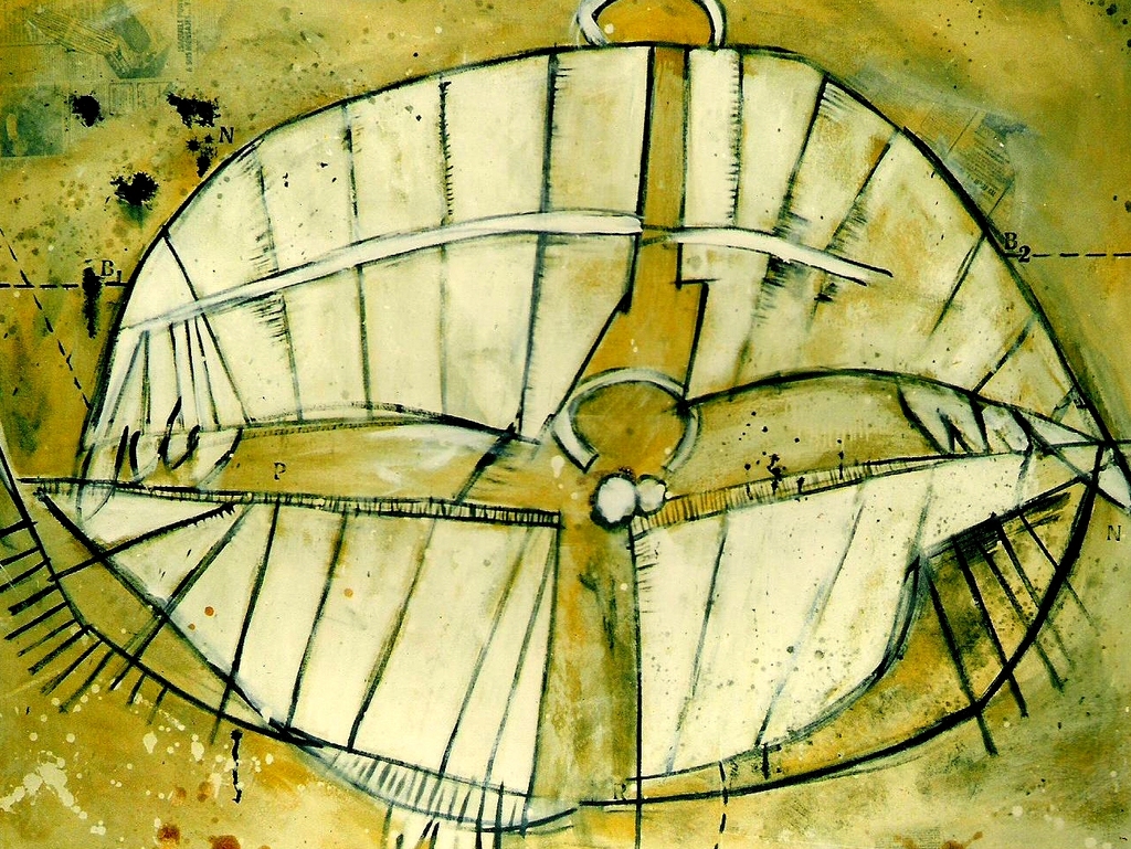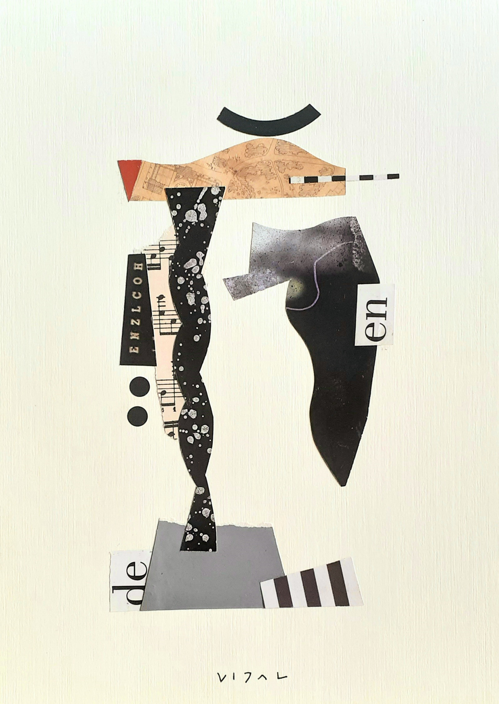 En este inestable equilibrio incorporo elementos organizadores como siluetas, tramas y vacíos y es allí donde creo haber hallado el lenguaje propio con el cual mi pintura se identifica y encuentra su posibilidad de desarrollo.Los collages de pequeño formato, y los objetos, en principio a modo de bocetos, marcan el inicio de esta travesía exploratoria, no obstante, lo cual, forman también parte de mi obra definitiva.